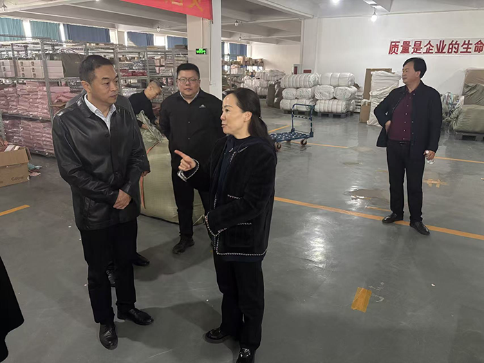马璐璐一行来到日用消费品、棉麻集团及下属烟花爆竹集团,主要听取了烟爆集团各片区经营管理工作开展情况和旺季烟爆仓库安全管理工作落实情况的汇报,对集团及下属子公司的安全设施设备进行了检查,对办公场所的党建氛围、文化建设、产品展示进行了参观,随后视察了五里坪重棉家纺生产车间和棉麻集团仓库。